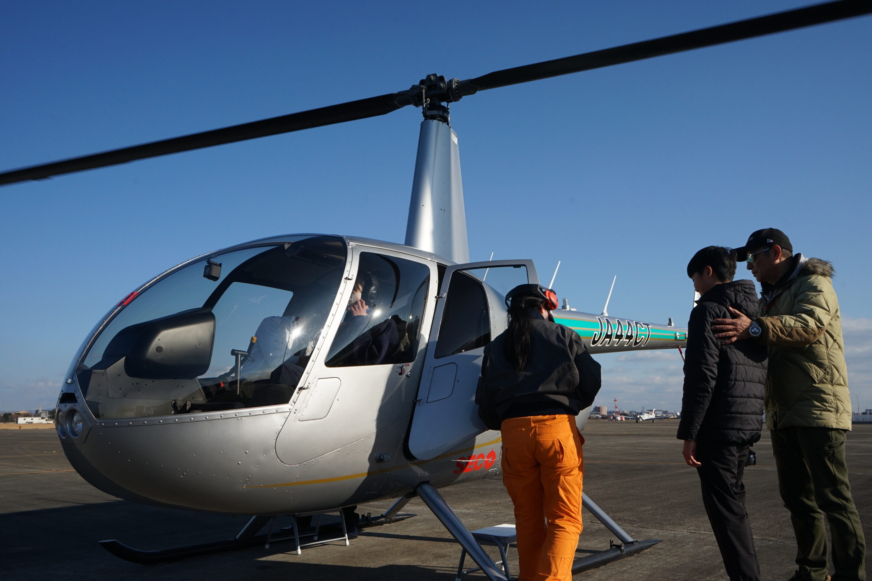 3人もしくは2人ずつヘリコプターに搭乗し、5分程度の体験フライトを実施しました。初めて空を飛ぶ参加者もおり、待っている間はドキドキでしたね。