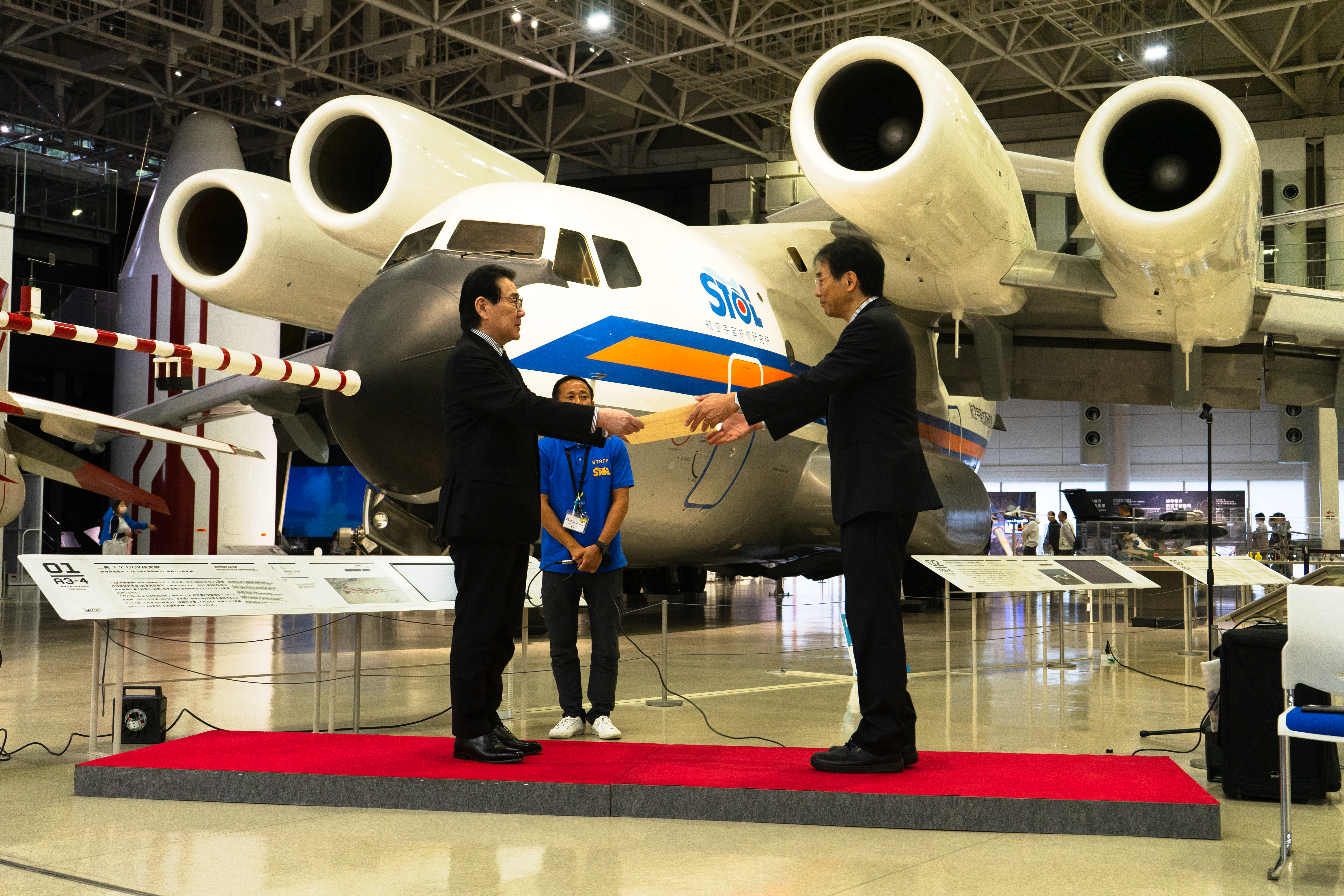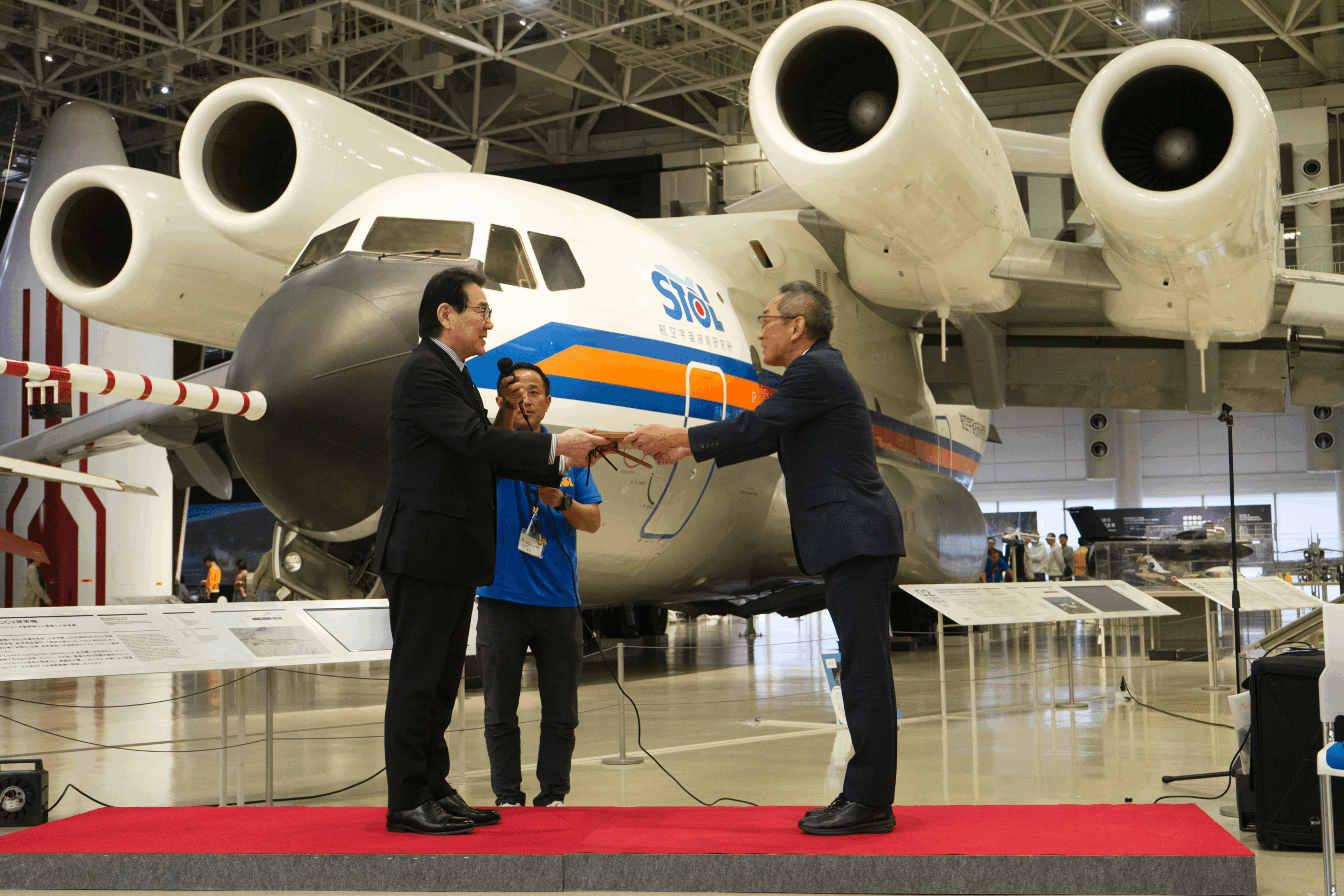 2025年10月25日、当館の目玉展示機の一つであり、博物館が誕生したきっかけでもある低騒音STOL実験機「飛鳥」の重要航空遺産認定証授与式が、「飛鳥」展示前で盛大に行われました。