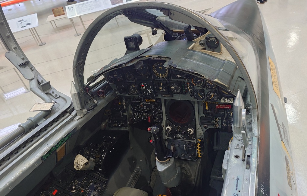 F-104J戦闘機の風防を開け、見学台から操縦席を見学することができます。